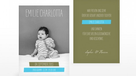 Kartenmacherei „Es ist daaaaaaaaaaaa …!“ Den Freudenschrei oder den leise gehauchten Seufzer möchte man manchmal festhalten – und mit seiner (nahen) Umwelt teilen. Wenn es soweit ist, kommt jeder ins Grübeln: Was machen wir denn jetzt? Machen wir überhaupt etwas? Aber individuell soll es sein – aber auch nicht zu viel Arbeit machen …Karten zu den verschiedensten Anlässen braucht man immer wieder. Man möchte der Welt etwas mitteilen, sich bedanken oder etwas ankündigen. Man möchte den Lieben eine Freude machen. Meist haben wir selbst darauf verzichtet oder etwas ganz eigenes entworfen, klar – als Designer und Texterin. Doch nicht jeder hat Zeit und Muße, alles von A bis Z selbst in die Hand zu nehmen. Da lohnt es sich, ein wenig im Netz zu stöbern. Anbieter gibt es viele – je nach Layout-, Preis-, Qualitäts- und Lieferwünschen ist die Auswahl groß.Unser Tipp: Echt süß, die Kartenmacherei – originelle Karten für Hochzeit, Geburt, Taufe, etc.Es ist easy: Lieblingskarte aussuchen, selbst gestalten und fertig! Verschiedene Designs, Formate und Vorschläge lassen kaum Wünsche offen … Fotografen erhalten übrigens Sonderkonditionen. Bonus: Im Magazin auf der Website gibt es außerdem jede Menge praktische Tipps zur Gartenparty, zum Hochzeits-Outfit, für Schwangere oder was Babys wirklich brauchen … nämlich anfangs viel weniger als gedacht. Auch welche Kartentexte passen könnten, Formulierungshilfen etc. werden angeboten. Attraktiv und ansprechend macht die farbenfrohe Seite Lust auf mehr … Einfach mal reinschauen, gerade nach der Geburt hat man ja oft anderes im Kopf als sich stundenlang mit – oder zumindest das Baby hat anderes im Kopf - diesen Dingen auseinander zu setzen. Dennoch möchten die frisch gebackenen Eltern etwas Feines in Händen halten bzw. aus der Hand geben und aller Welt die Neuigkeit verkünden: wir sind zu dritt. Viel Spaß dabei (www.kartenmacherei.de)!