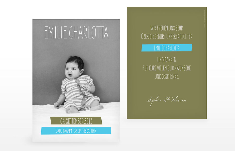 Kartenmacherei „Es ist daaaaaaaaaaaa …!“ Den Freudenschrei oder den leise gehauchten Seufzer möchte man manchmal festhalten – und mit seiner (nahen) Umwelt teilen. Wenn es soweit ist, kommt jeder ins Grübeln: Was machen wir denn jetzt? Machen wir überhaupt etwas? Aber individuell soll es sein – aber auch nicht zu viel Arbeit machen …Karten zu den verschiedensten Anlässen braucht man immer wieder. Man möchte der Welt etwas mitteilen, sich bedanken oder etwas ankündigen. Man möchte den Lieben eine Freude machen. Meist haben wir selbst darauf verzichtet oder etwas ganz eigenes entworfen, klar – als Designer und Texterin. Doch nicht jeder hat Zeit und Muße, alles von A bis Z selbst in die Hand zu nehmen. Da lohnt es sich, ein wenig im Netz zu stöbern. Anbieter gibt es viele – je nach Layout-, Preis-, Qualitäts- und Lieferwünschen ist die Auswahl groß.Unser Tipp: Echt süß, die Kartenmacherei – originelle Karten für Hochzeit, Geburt, Taufe, etc.Es ist easy: Lieblingskarte aussuchen, selbst gestalten und fertig! Verschiedene Designs, Formate und Vorschläge lassen kaum Wünsche offen … Fotografen erhalten übrigens Sonderkonditionen. Bonus: Im Magazin auf der Website gibt es außerdem jede Menge praktische Tipps zur Gartenparty, zum Hochzeits-Outfit, für Schwangere oder was Babys wirklich brauchen … nämlich anfangs viel weniger als gedacht. Auch welche Kartentexte passen könnten, Formulierungshilfen etc. werden angeboten. Attraktiv und ansprechend macht die farbenfrohe Seite Lust auf mehr … Einfach mal reinschauen, gerade nach der Geburt hat man ja oft anderes im Kopf als sich stundenlang mit – oder zumindest das Baby hat anderes im Kopf - diesen Dingen auseinander zu setzen. Dennoch möchten die frisch gebackenen Eltern etwas Feines in Händen halten bzw. aus der Hand geben und aller Welt die Neuigkeit verkünden: wir sind zu dritt. Viel Spaß dabei (www.kartenmacherei.de)!