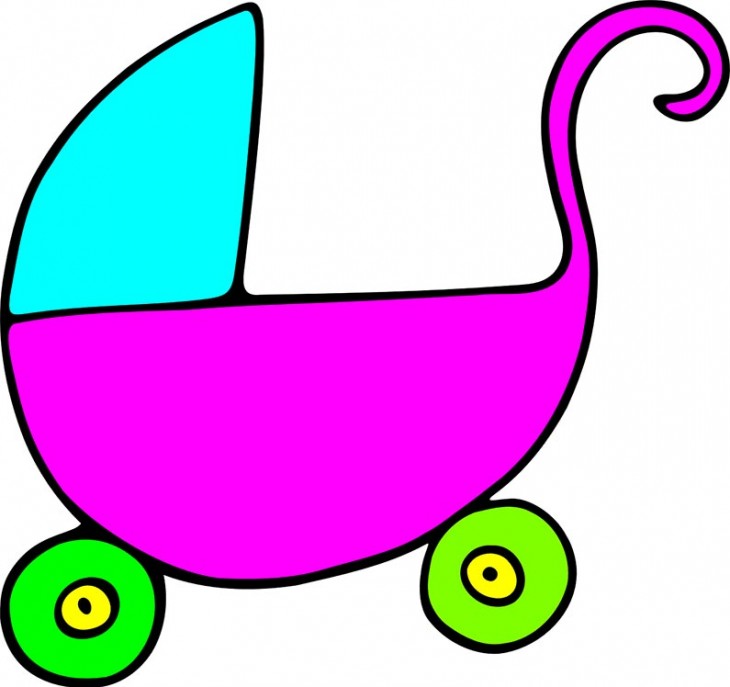 Eltern kommen mit leerem Kinderwagen aus dem Kaufhaus.