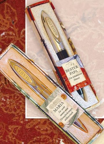 Mit einem eleganten Gehäuse aus hochwertigem Metall und dem modischen Clip, auf dem das geätzte Namensschild angebracht ist, entstand ein Stift von wahrhafter Qualität - bis hin zur attraktiven Geschenkverpackung und dem Charakterprofil, das Einblicke gewährt. Diese schönen Stifte sind in zwei Varianten erhältlich - Silber mit schwarz emalliertem Metallkorpus für den Herren und für die Dame mit elegantem, gold eloxiertem Metallkorpus - das perfekte persönliche Geschenk für Familie und Freunde.
